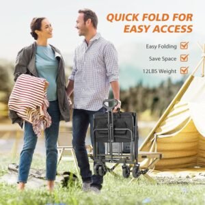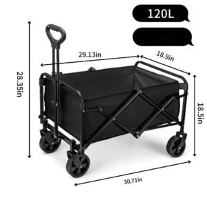 Collapsible Wagon Cart with Wheels Foldable – Folding Utility Heavy Duty Wagons Carts for Grocery Sports Garden Shopping Camping Wheelbarrows (Black, 120L)