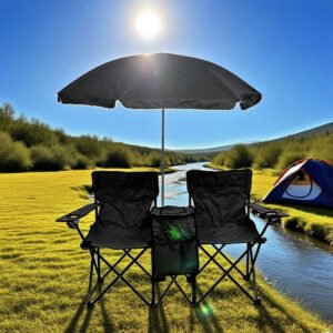 √【Easy to Use and Versatile】- You only need to unfold it and insert the canopy into the designated place. The high-quality materials make our double chair set very easy to clean. The simple but practical design makes it very suitable for picnics, camping, etc. in parks, beaches, backyards, campgrounds, allowing you to enjoy the happy time with family and friends.