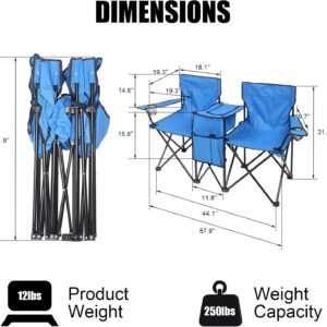 √【Stable and Durable Structure】- The frame of the double camping chair is made of steel pipe, and its frame is made of steel coated with black coating, which has anti-corrosion and anti-rust effects. The stable tube frame can support 250 pounds per chair. Plastic connectors for collecting steel frames. High density and fine craftsmanship ensure its long-term durability. The ergonomic structural design provides you with the best seating experience, allowing you to relax.