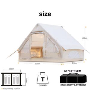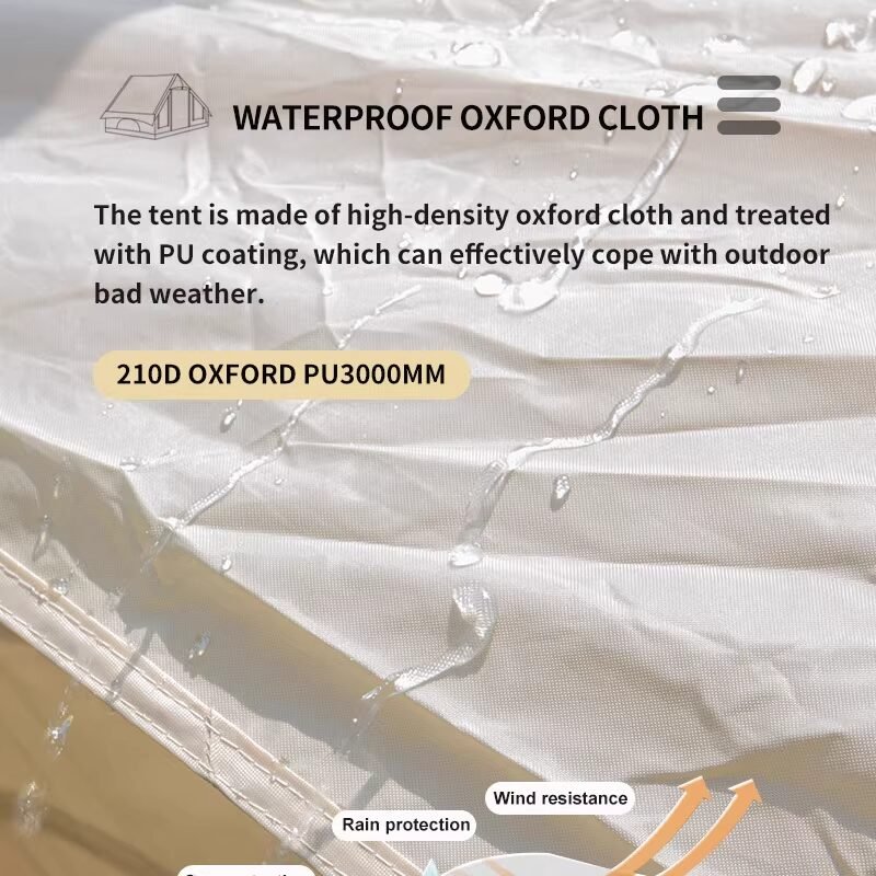 【Safe and Sturdy Material】: This 4-season inflatable tent is made of high-density 210D Oxford cloth and SBS zipper, 3000mm waterproof and UV resistant, so you can feel comfortable and not stuffy inside; it can reasonably balance the Ventilation and waterproofing, and can withstand the temperature difference between day and night to avoid the flow of cold air, keep the indoor environment comfortable and do windproof and rainproof.